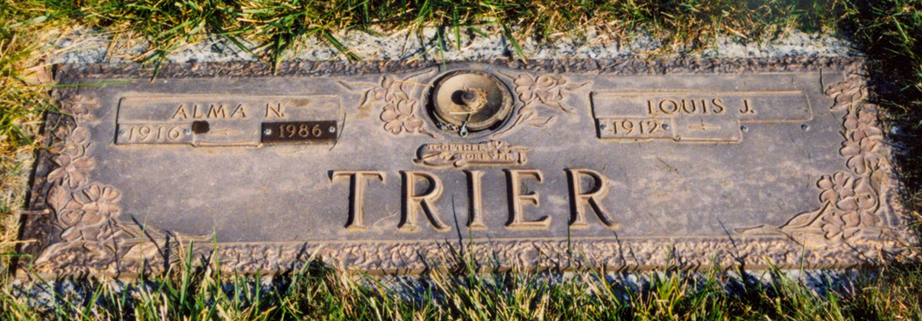 The Tombstone of: Alma Naoma Austill Trier & husband Louis J Trier