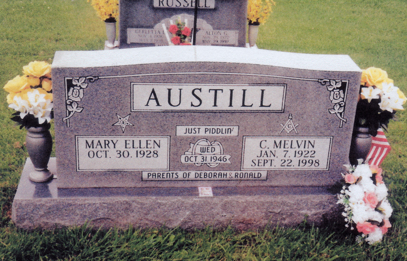 The Tombstone of: Clesta Melvin (Mel) Austill (7 January 1922 - 22 September 1998)Mel is a son of Ira (Doc) Austill & Rosella Myrlte (Hill) Austill