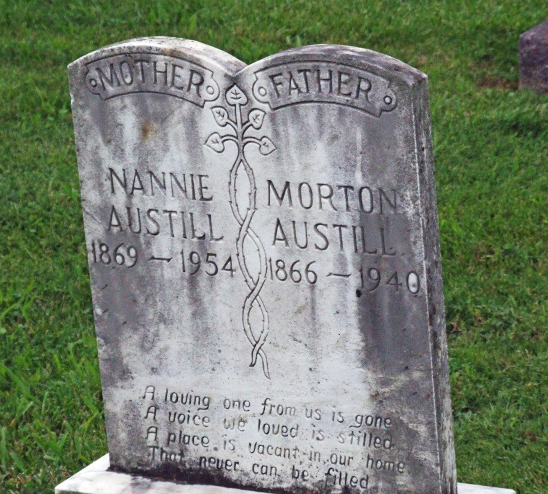 The Tombstone of: Evy (Era) Morton Austill (Born: 1866, Died: 1940) and wife Nannie D (Lindsey) Austill(Born: 1869, Died: 1954)