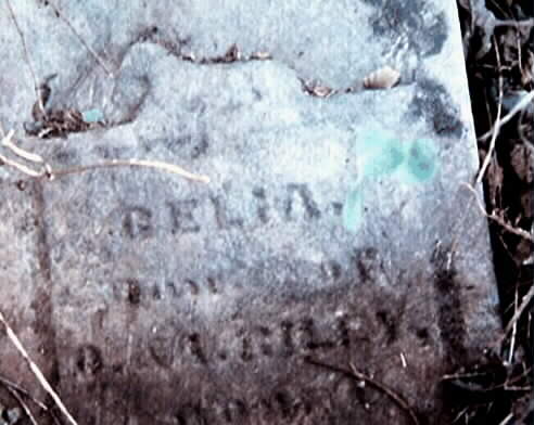 The Tombstone of: Celia Riley (Born: 25 Jul 1850, Died: 10 Jun 1865) Inscription reads: Celia dau of O & A Riley (and the dates)