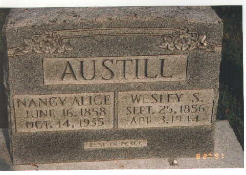 The Tombstone of: Wesley Austill and wife Nancy Alice Barnett Austill (He Born: 25 September 1858, Died: 3 April 1944) (She Born: 16 June 1858, Died: 14 October 1935)